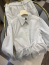 Джинсовый костюм состоит из рубашки на кулиске и брюк прямого кроя
